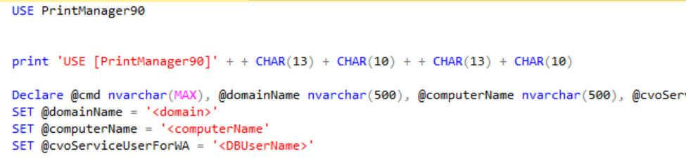 For @cvoServiceUSerForWA – put the DB service account name which is used to install Web Admin.