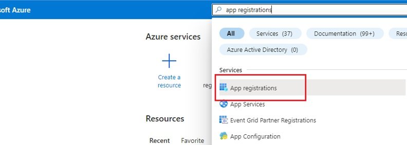 1. Sign in to the Azure portal and search “App registrations”