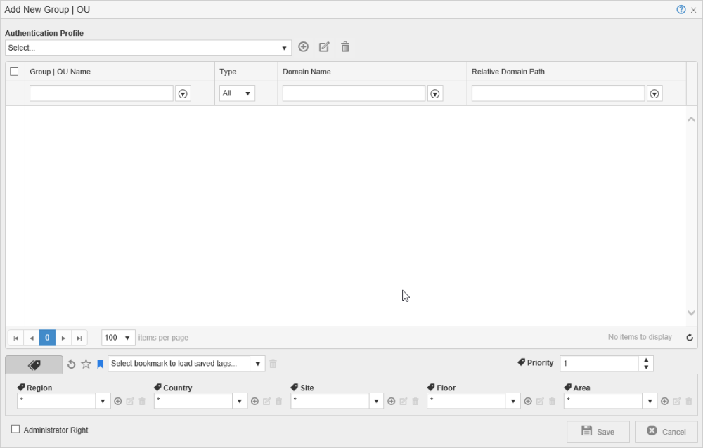 - From the [Authentication Profile] drop-down, select the authentication profile to fetch the Group or Organizational Unit from the Active Directory.