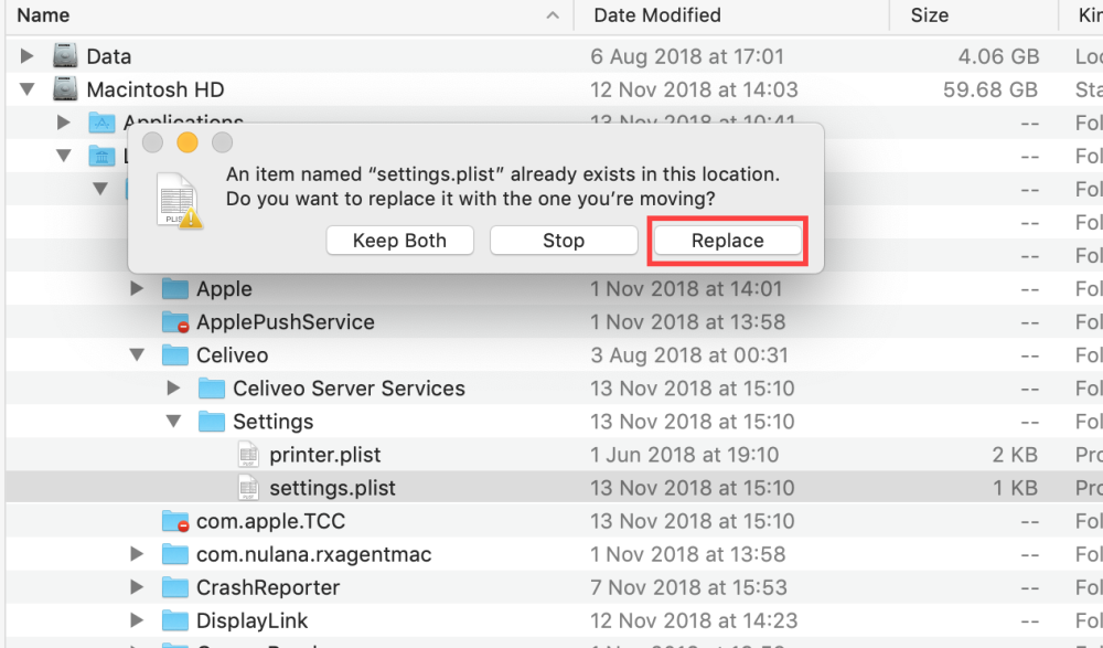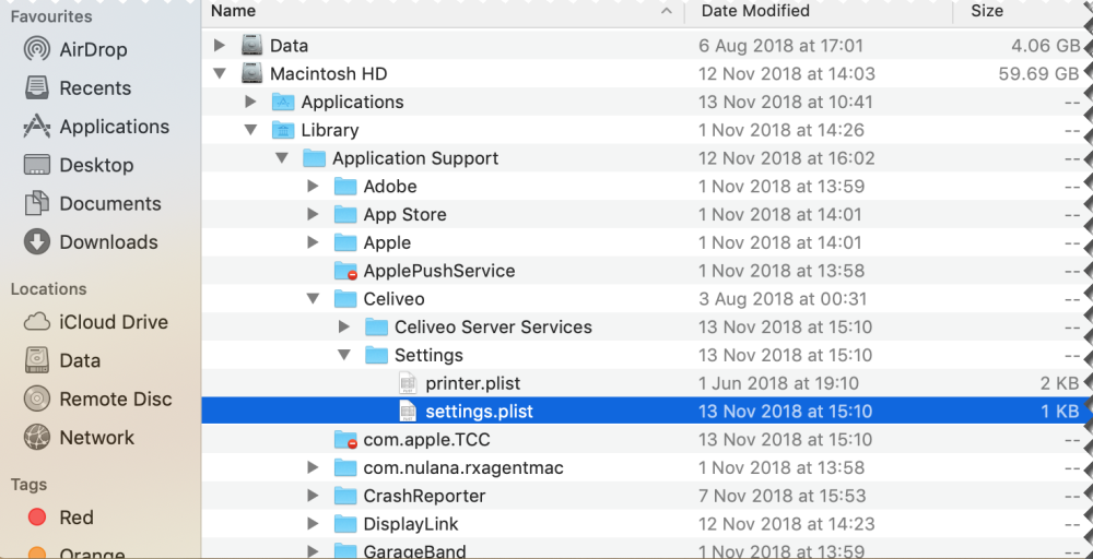 - Make a backup of the settings.plist file located in Library/Application Support/Celiveo/settings/.