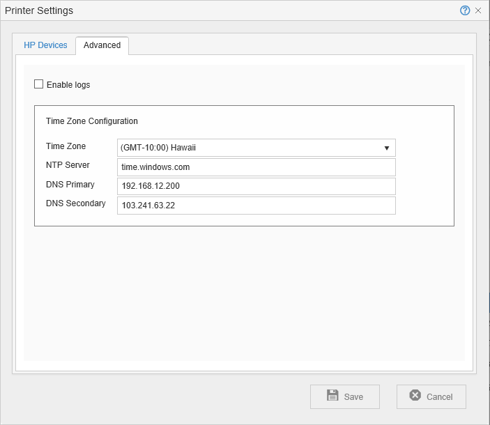 - Click [Save]. You are returned to the list of printers.