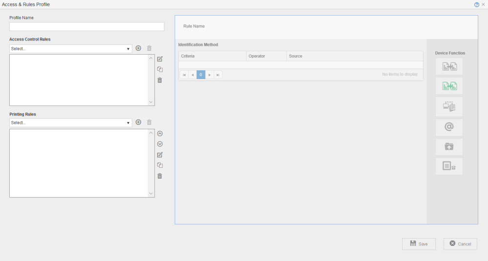 - From the [Access & Rules Profile] drop-down, select the Access and Rules profile for the Printer.