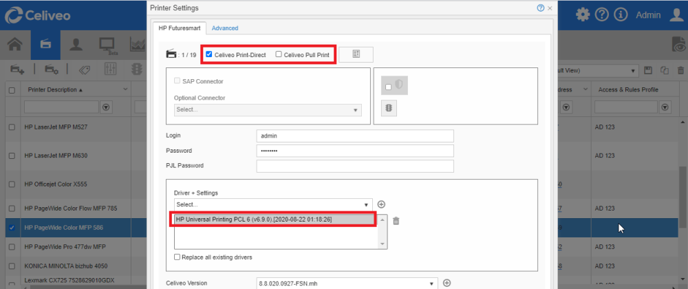 - Uncheck the Pull Print checkbox and ensure the Print-Direct checkbox is enabled.